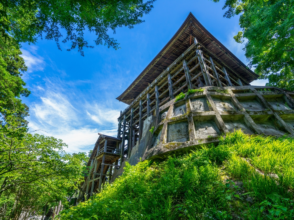 千葉県長南町にある天台宗の笠森観音(笠森寺)。森の中の巨岩の上に建つ、日本唯一の「四方懸造り(しほうかけづくり)」という61本の柱で支えられた特異な建築様式の観音堂(国指定重要文化財)が特徴の寺院です。空中に浮かんでいるような独特な構造で、見る者を圧倒します。坂東三十三観音の第31番札所であり、子授けのご利益でも知られ、荘厳な雰囲気と美しい眺望が魅力のパワースポットです。