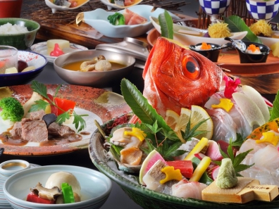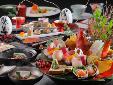 伊勢海老の刺し身、きんめ鯛の煮付けや荒磯など、新鮮な海の幸をお愉しみいただけます。