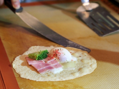 通常そば粉で作るガレット(フランス郷土料理)を「長狭米」の米粉で仕上げた朝の名物ヘルシー料理