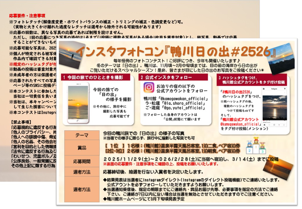 ①2025/11/29(土)~2026/2/28(土)に当宿に宿泊し、テーマの写真を撮影