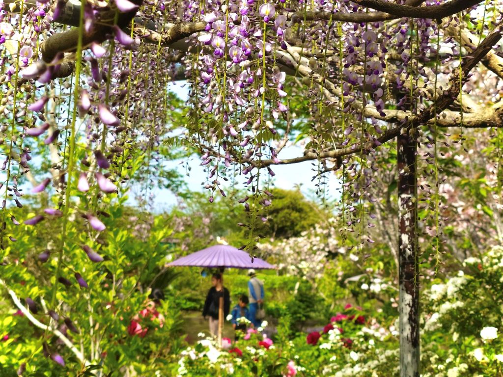 千葉県房総半島の君津市の森の中にある、500品種 約3,000本バラをコレクションしたコテージガーデン。英国アンティーク雑貨のお店やランチ・ティータイムを楽しめるカフェもあり、可愛らしい「猫スタッフ」がお出迎えしてくれます。バラ好きのご夫婦が手作りで始めた個人邸のローズガーデンは完全無農薬。晩春~初夏は、マグノリアや宿根草が咲き始め、キッチンガーデンではアイリスが見頃。バラの最盛期は5月中旬〜6月中旬頃ですが、今年は4月下旬頃から早咲きのバラが少しずつ咲き始める見込みです。